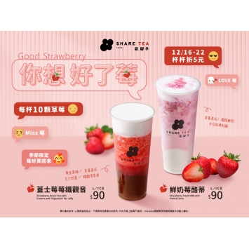 Styletc-手搖店草莓新品折5元!鮮奶莓酪蒂、蓋士莓莓鐵觀音,一次喝10顆草...